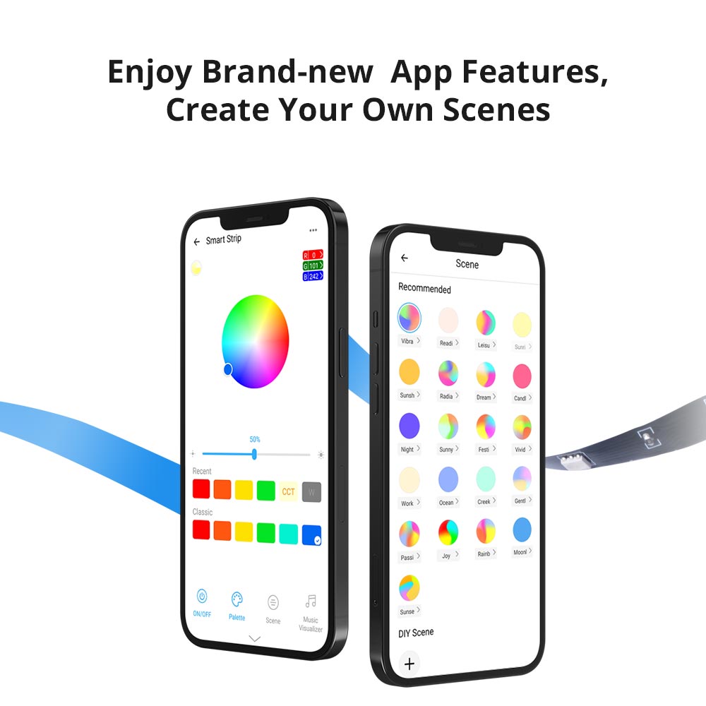 RGB интелигентна LED лента. Контрол на цветната температура от 2500K до 6500K, димируема, може да се реже. Лепенка за лесно закрепване. -